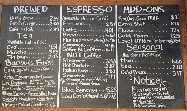 Mochas, Blended Lattes, Fruit Smoothie, Italian sodas, Iced Teas, Chai